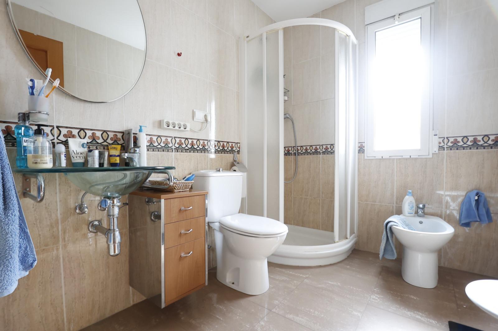 La primera planta cuenta con tres habitaciones grandes con armarios empotrados y aire acondicionado individual, incluyendo la habitación principal con baño privado y ducha, más un baño completo con bañera.